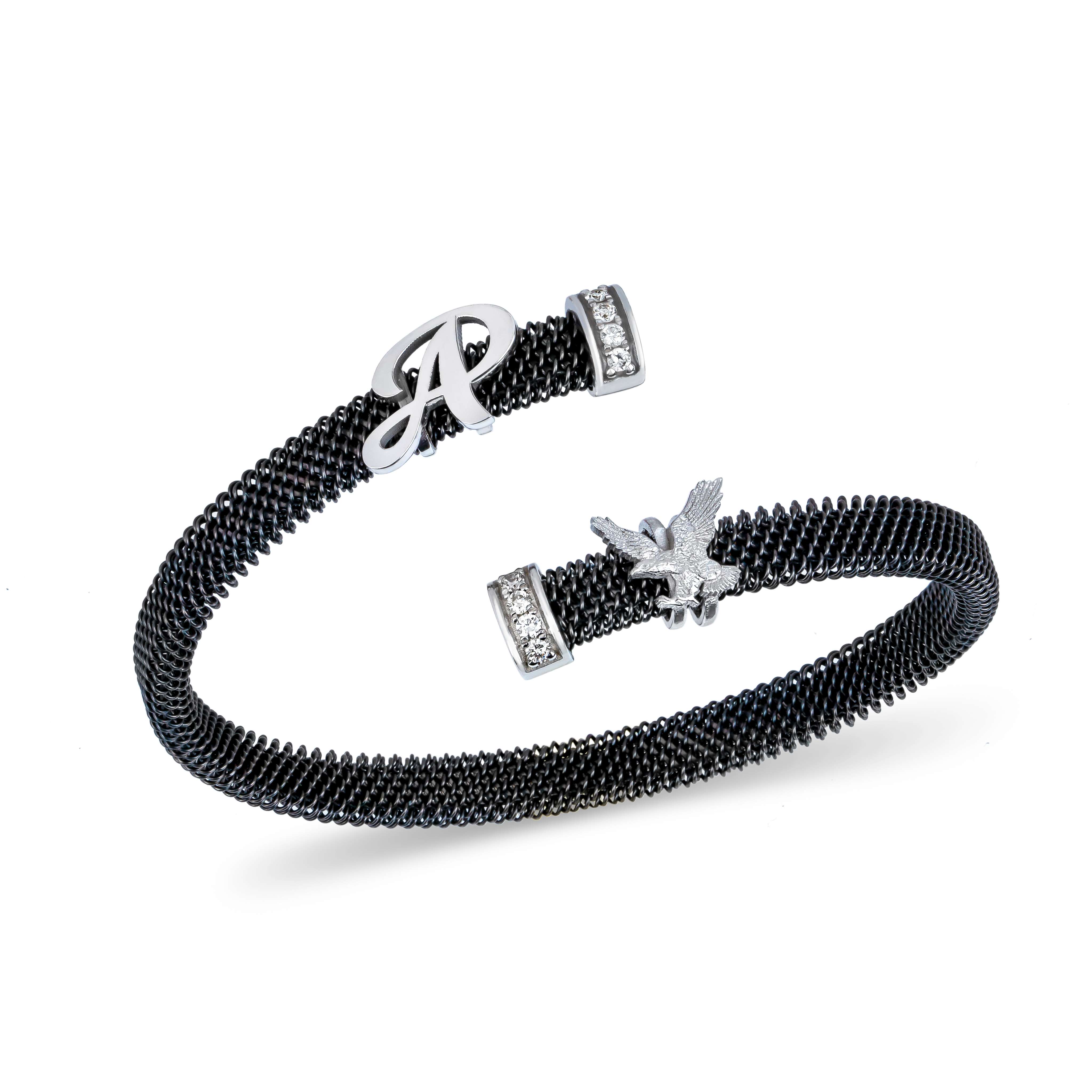 | Ürün Adı | Altın Pırlantalı Özel Harf ve Kartal Figürlü Tasarım Yassı Çelik Bileklik |